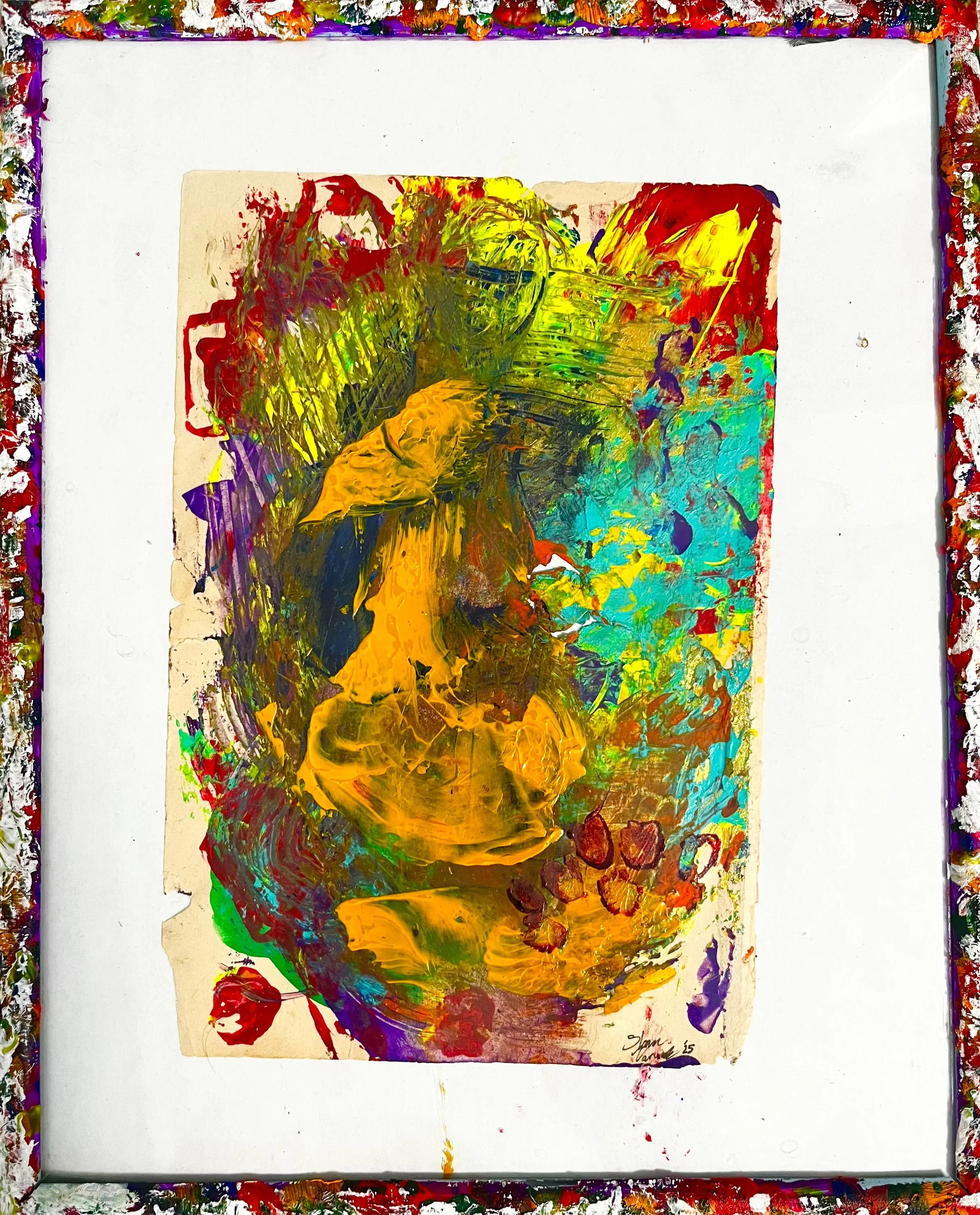 Acrylic and Tempera Paint on Paper and Metal Frame